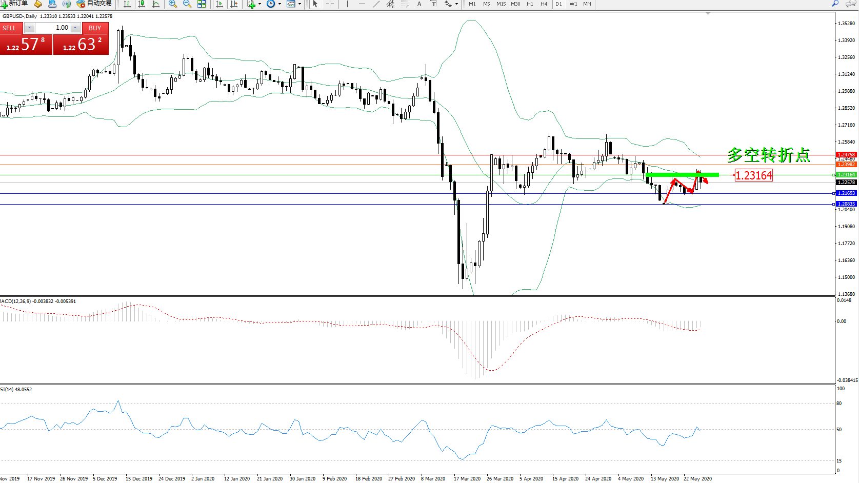 备选策略:1.23164上方看涨,目标1.23982、1.24758