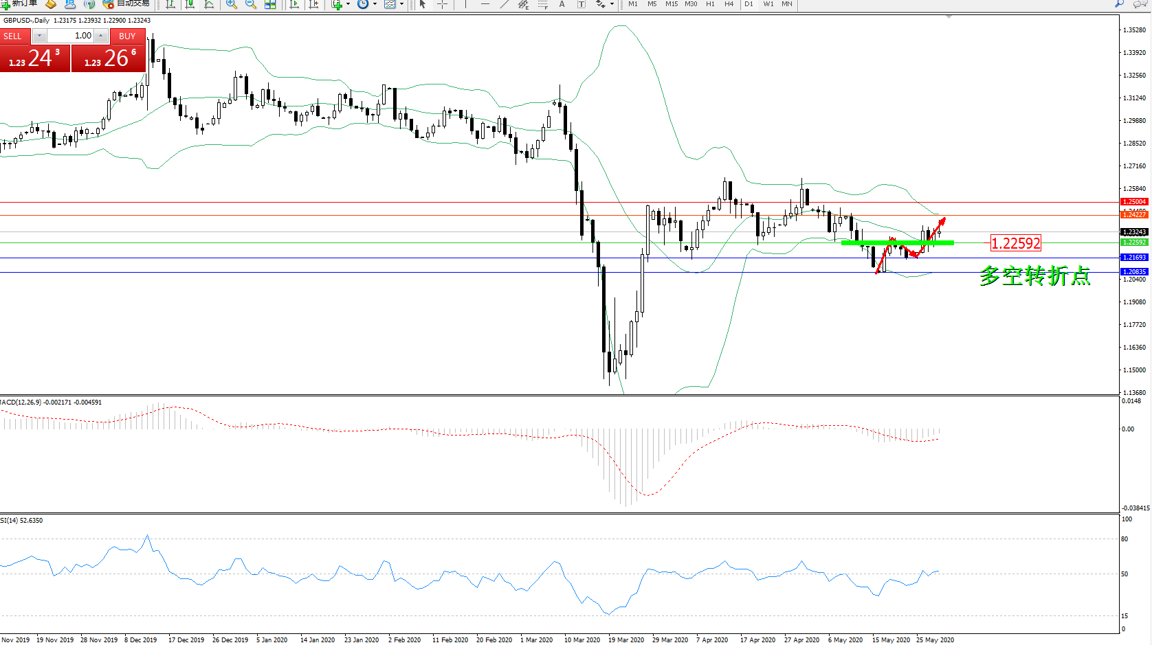 交易策略:1.22592上方看涨,目标1.242271.25004