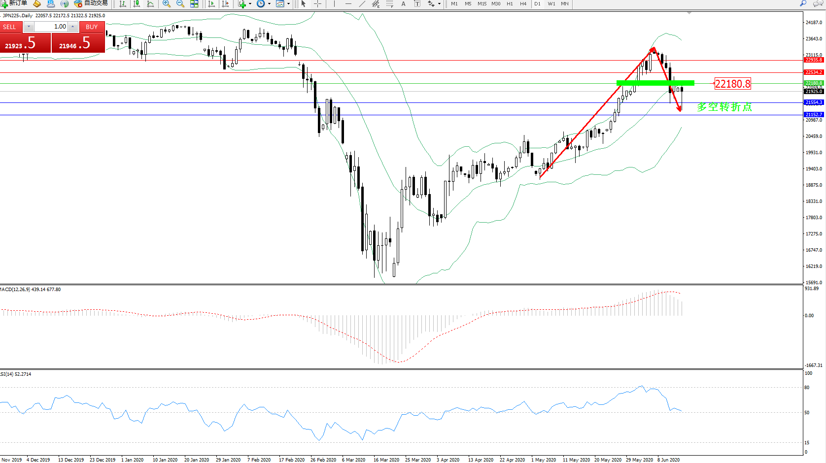 日经225指数615日(周一)收盘下跌777.98点,跌幅3.49%,报21527.50点。日本央行已经采取一系列措施支持遭疫情打击的经济。本周将对这些措施进行评估,预计将维持主要政策杠杆不变。日本首相安倍晋三:疫情爆发结束后将重新审视抗疫政策。目前的首要任务是采取一切可用的方式实现经济的复苏。需要确保市场保持对日本财政的信任。将尽一切努力振兴经济,保护就业。这并不意味着我们可以进行无限量的消费。一旦经济正常化,我们希望继续努力恢复日本的财政状况。将寻求在疫情后摆脱通缩,促进经济复苏。