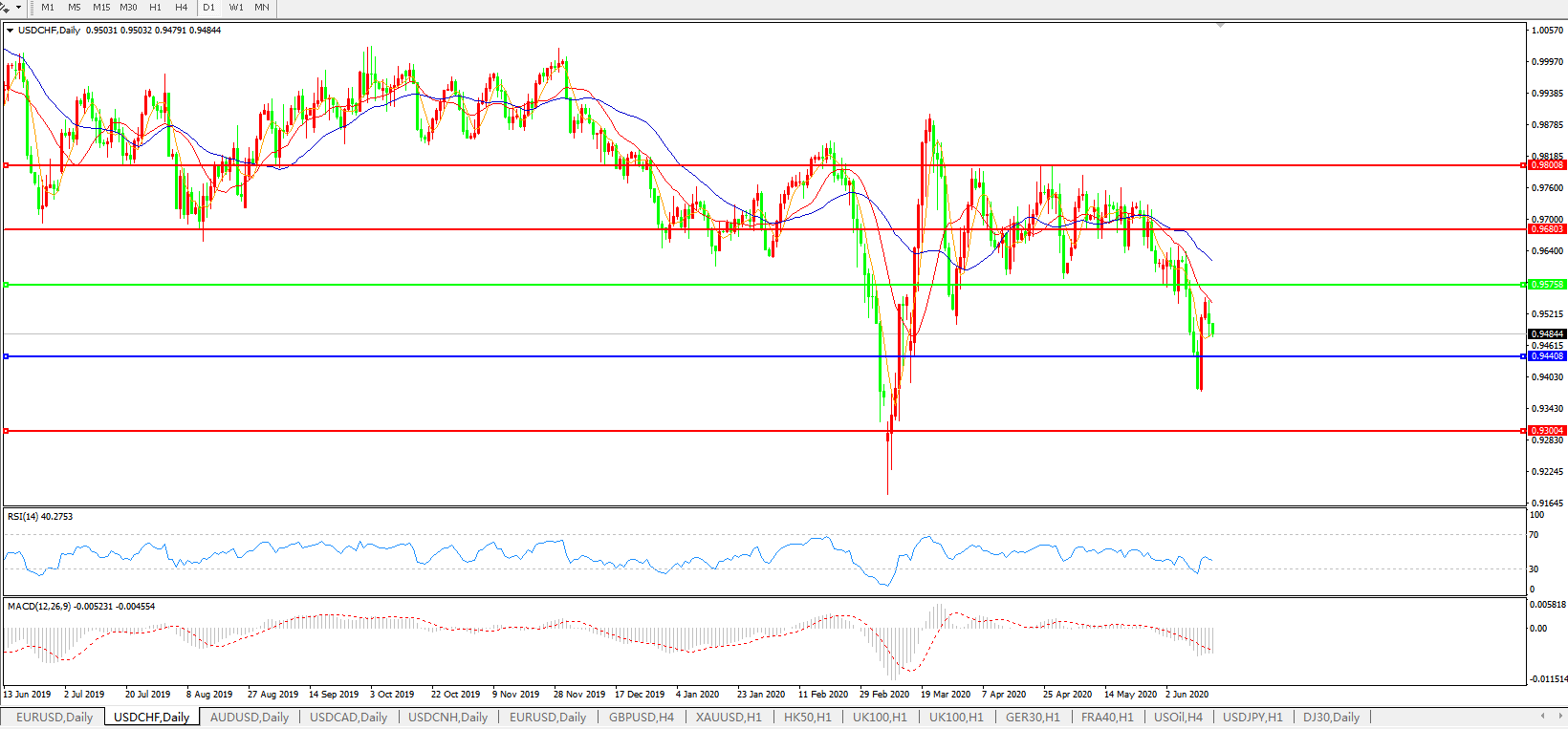 交易策略:0.9575下方看跌,目标0.9440、0.9300