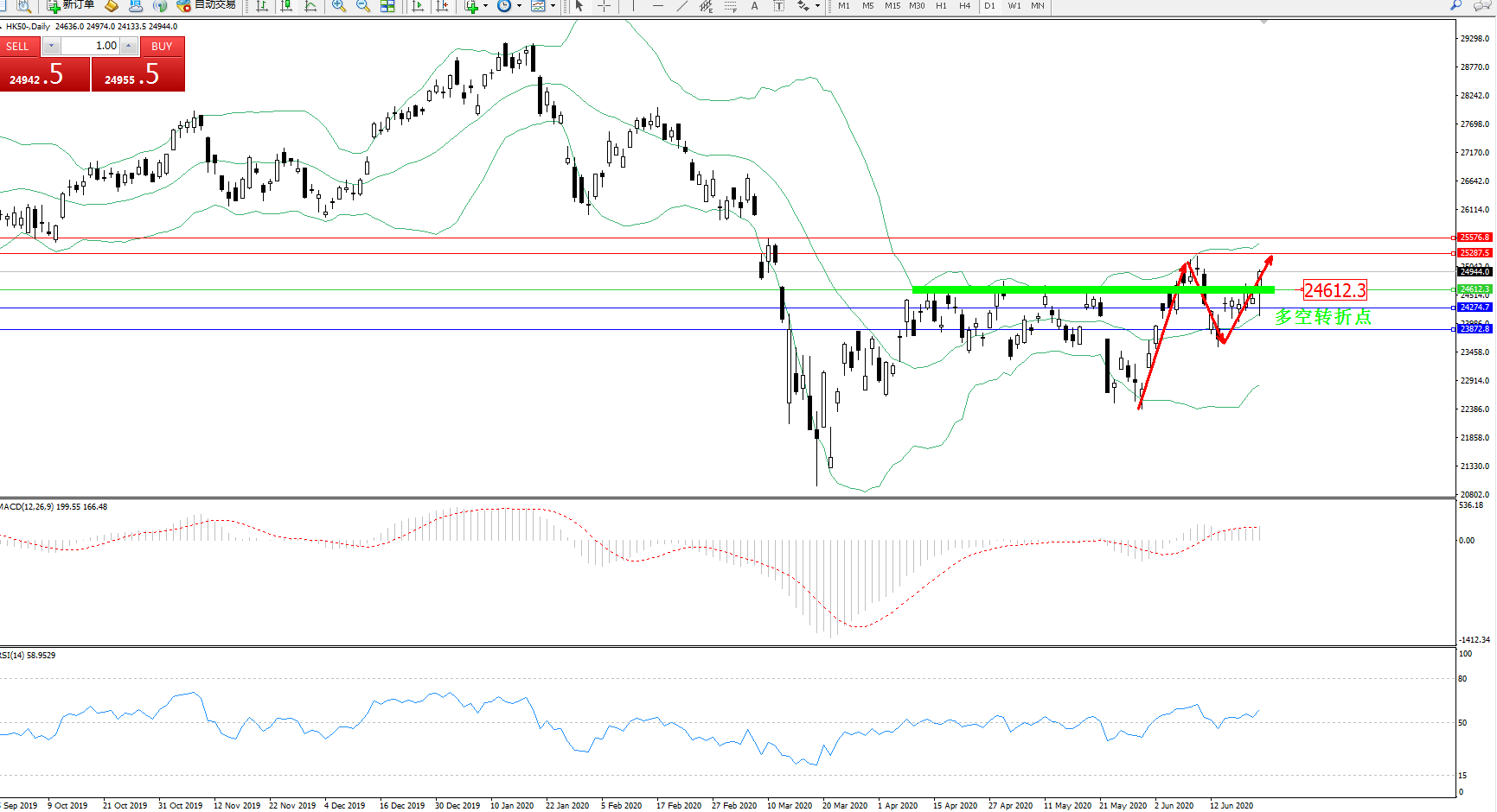 技术点评:多头动力强势拉升触及布林带指标上轨后遇阻回撤,纠结于中轨上方持续震荡数日,多头动力伺机发力上扬,多头再次拉升,布林带指标通道呈上行趋势走势中,前期高位上轨附近节点破位在即,MACD指标处于0轴线上方多头区域维持整理平移中,RSI指标处于50均衡线上方弱势徘徊数日后开始有拉升上扬迹象;