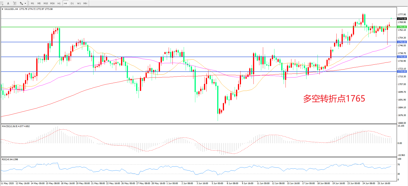 交易策略:在1765.00之上看涨,目标1780.00 1800.00