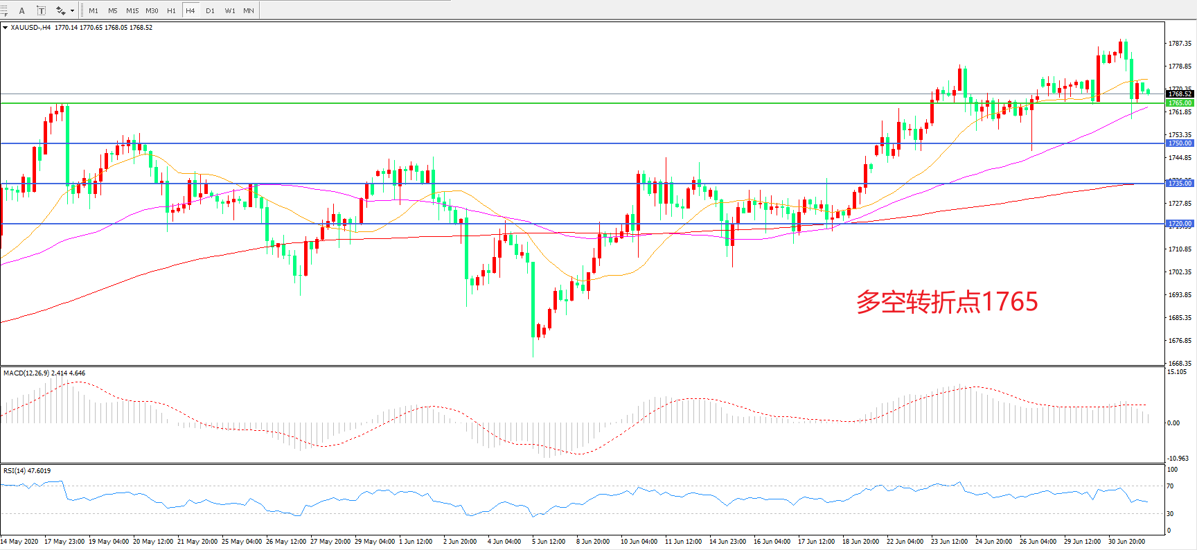 多空转折点:1765.00