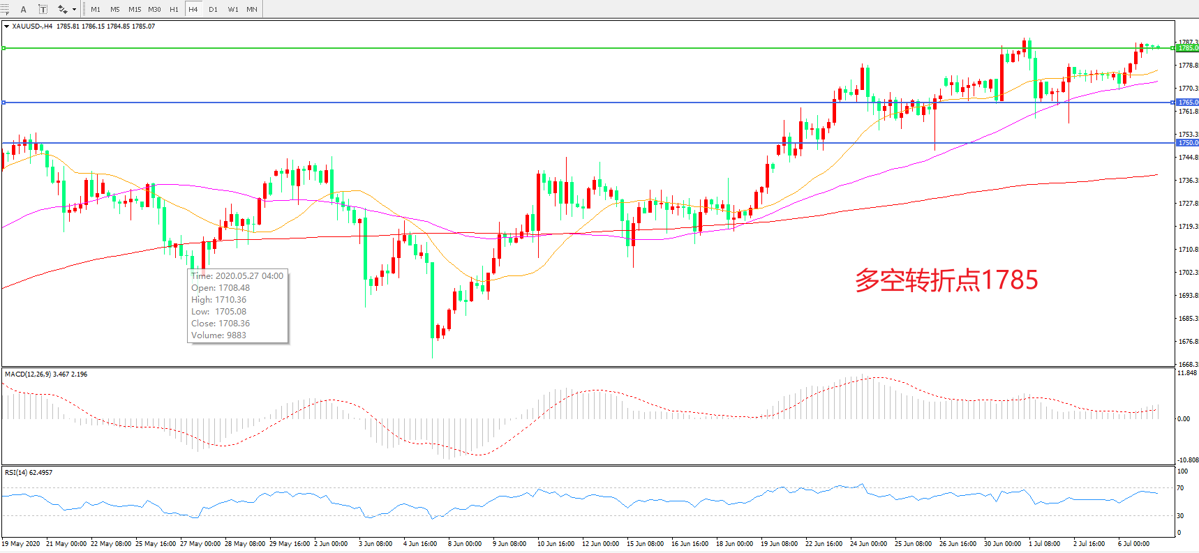 交易策略:在1785.00之上看涨,目标1800.00   1820.00
