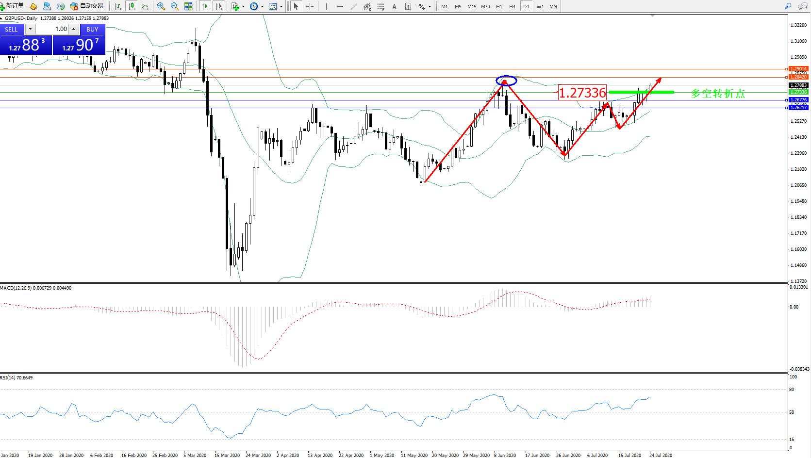 交易策略:1.27336上方看涨,目标1.28420、1.29014