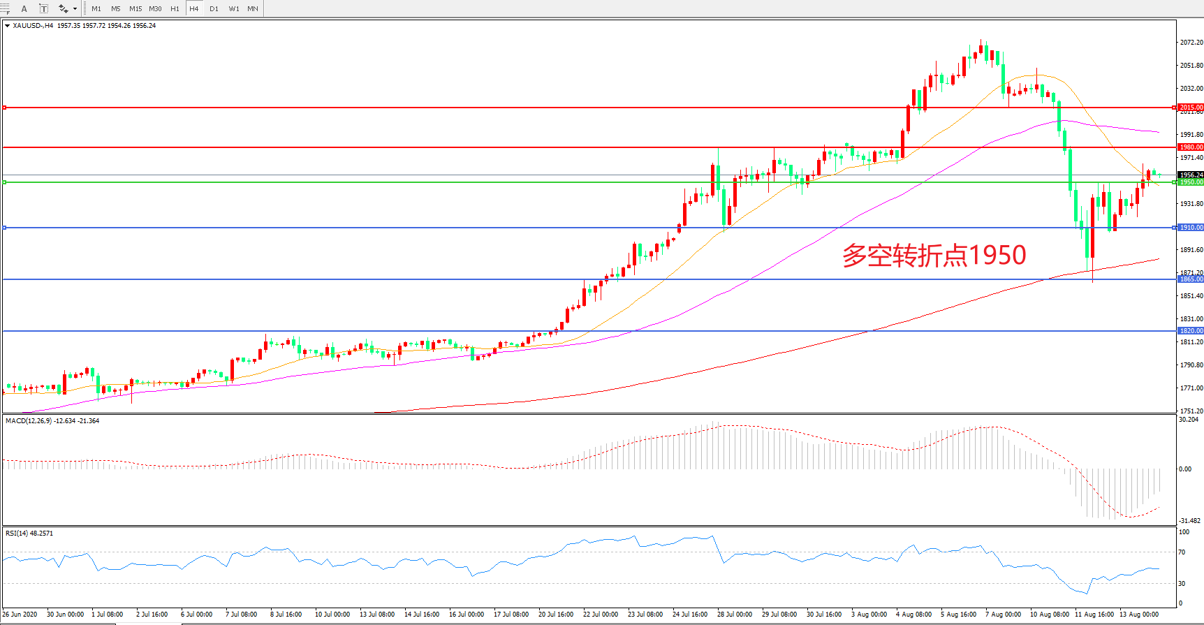 备选策略: 在1950.00之下看跌,目标1910.00 1865.00
