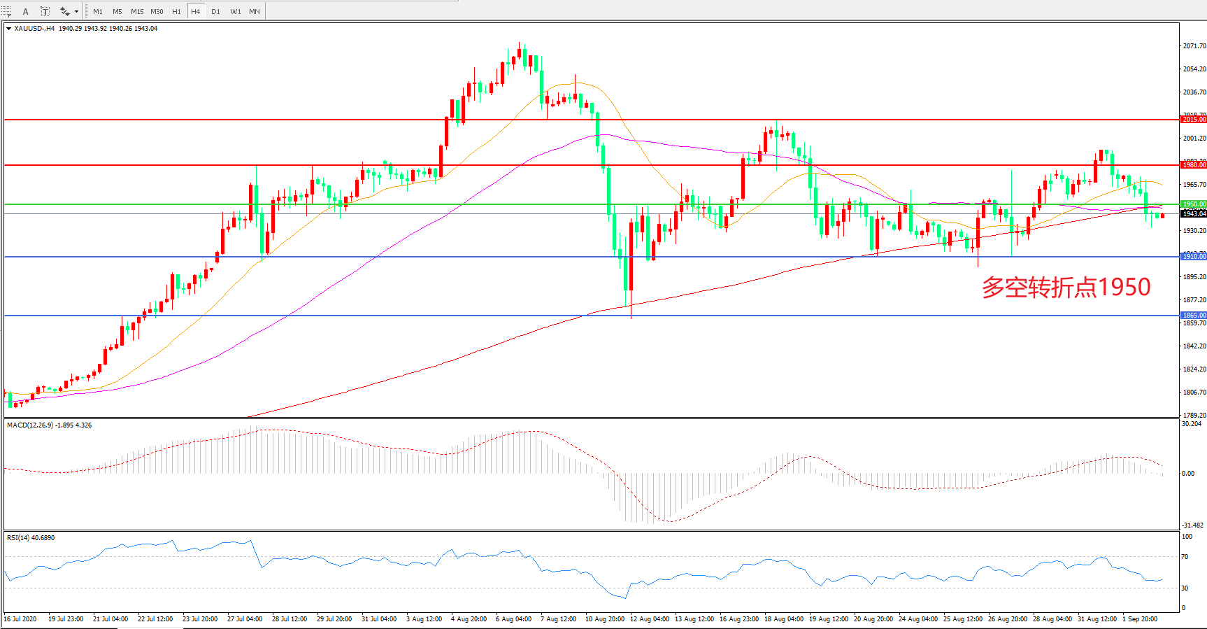 交易策略:在1950.00之下看跌,目标1910.00 1865.00