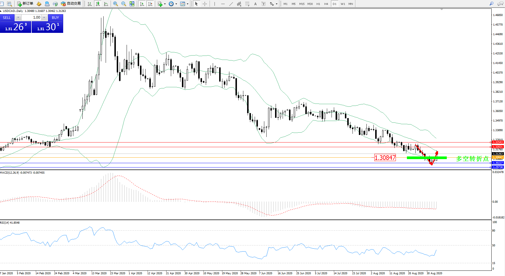 美元兑加元升至四日高点1.3121,日内美元指数大幅走高,商品货币承压,全球经济很难恢复至疫情前的水平,今明两年都不会发生这种情况;某些经济领域只能恢复70%至90%的整体产能。此外,国际油价也大幅走低,创近一个月新低,这也非常不利于加元的表现,此外加拿大贸易帐数据基本符合预期。尽管原油库存整体下降,但成品油消费改善有限,后期原油消费也可能下滑。油价回升也刺激了供应增加,美国原油供应正在上升,大宗商品的走向趋同,部分预示着中期调整可能来袭。