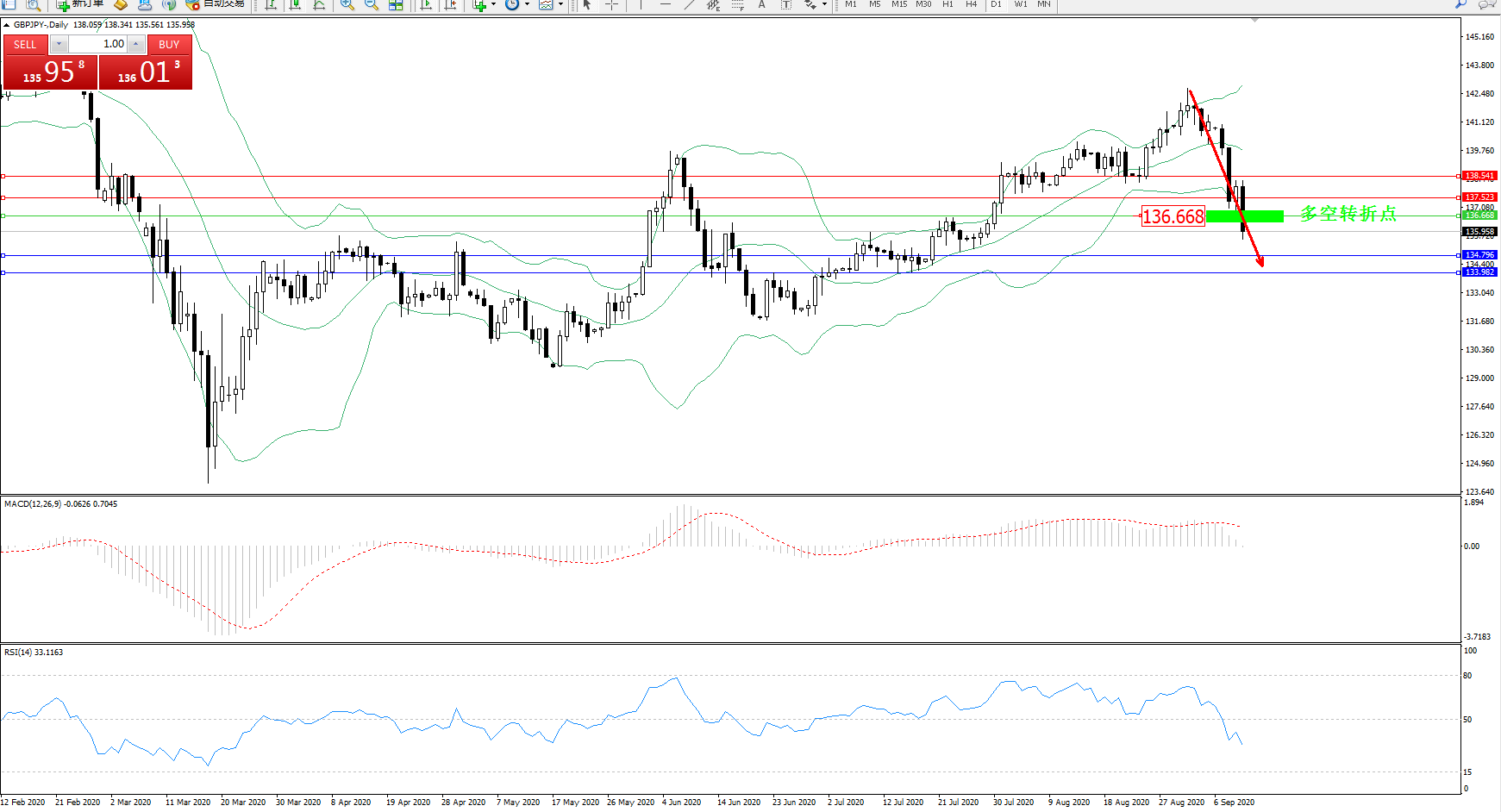 技术点评:高位空头动力急转直下,跌破布林带指标下轨后不断向下移动中,布林带指标呈张口走势持续中,跌势依旧,未见其止步迹象,空头下行态势良好,MACD指标处于多头区域高位持续宽幅整理平移后出现回撤下移至0轴线附近徘徊,RSI指标高位空头动力持续震荡下移破50均衡线进入空头区域持续下行中;