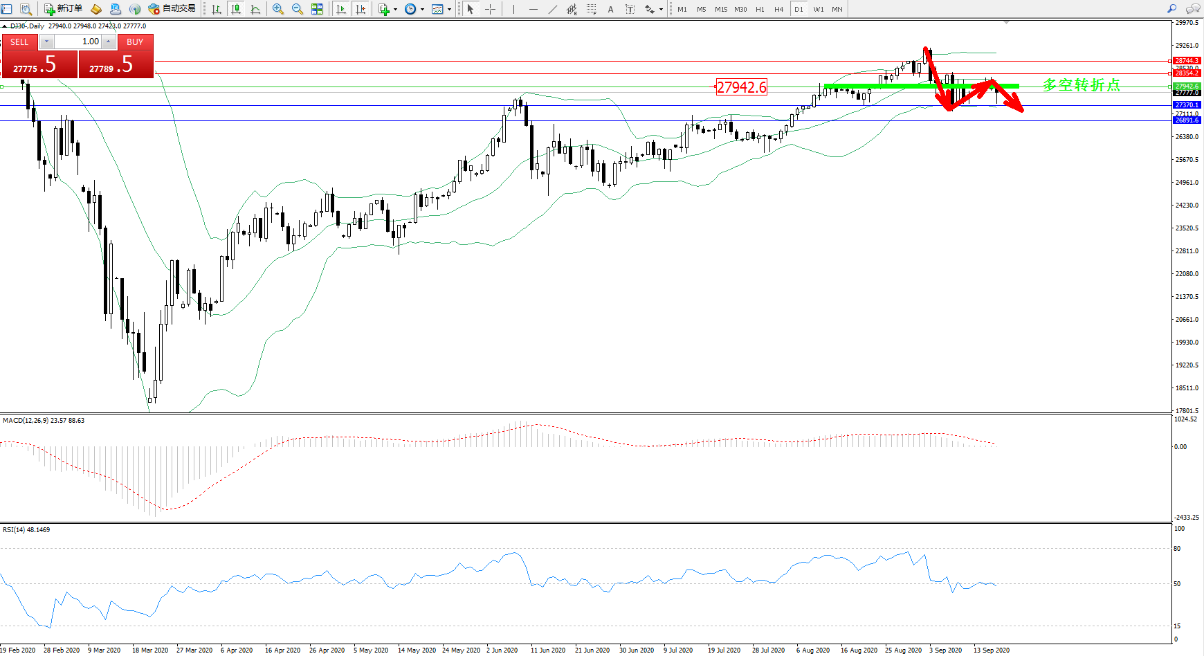 道琼斯指数9月17日(周四)收盘下跌130.40点,跌幅0.47%,报27901.98点。美股三大指数集体收跌,科技股领跌,投资者在经济逐步复苏之际权衡现有刺激力度是否足够。虽然美联储主席鲍威尔表示,美联储在放松通胀政策后会继续保持宽松,但他并未就宽松力度会有多大和持续多久给出明确指引。美联储官员最近几周强调,经济复苏前景很大程度上取决于疫情防控能力,并且可能需要进一步的财政刺激措施来支持就业和收入。长期近零利率和更宽松的通胀目标对经济产生的实际影响还有待观察,美联储的沉闷语调可能给投资者带来压力。周四公布的一组美国经济数据让风险人气更加蒙阴。美国周度初请人数仍居高不下,上周报86万人,房屋开工和费城联储制造业指数均有所下降。由于美联储承诺将利率维持在目前的纪录低位,直到就业和通胀达到目标,市场表示美元强势可能是暂时的。