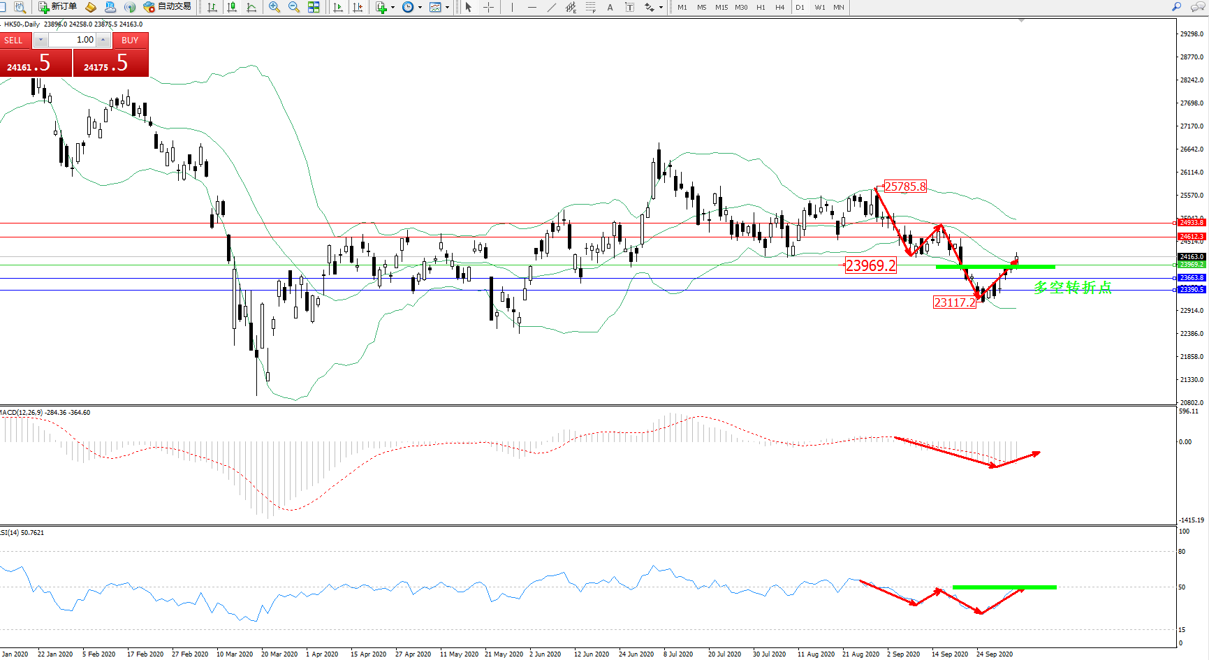 技术点评:空头动力延续布林带指标下轨弱势不断下探,低位抵达23117附近后得到支撑开始整理回升,布林带指标呈收口走势持续下行后开始有走平态势,低位反转回升至中轨附近后弱势整理,突破中轨有继续回升态势,MACD指标处于空头区域低位整理缓慢回升中,RSI指标处于空头区域持续震荡下行后得到支撑开始反转上移,触及50均衡线附近徘徊中;