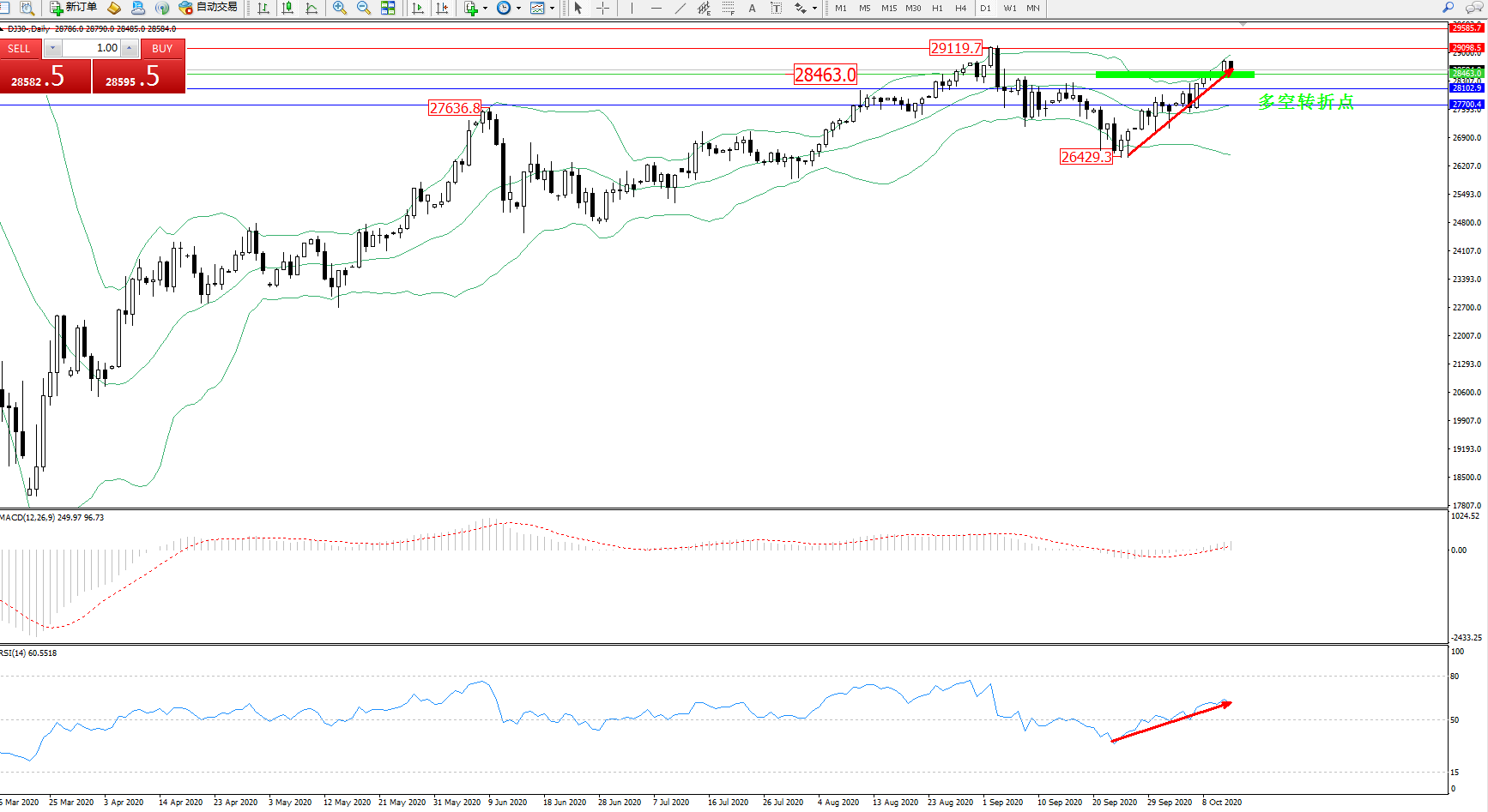 技术点评:多头动力延续布林带指标上轨内侧持续震荡上扬态势良好,布林带指标呈张口走势持续中,且有突破前期高位29119位置态势,多头动力拉升强悍,MACD指标多头动力突破0轴线后维持上移中RSI指标低位多头动力上移至多头区域持续拉升上扬徘徊中;