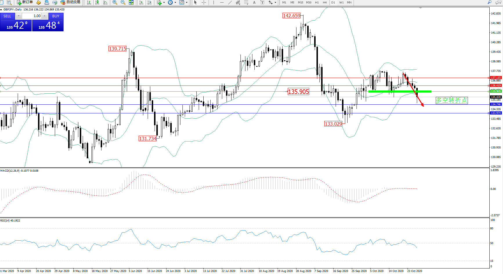 英镑兑日圆跌至135.463附近,稍早跌至134.869附近整理,英国央行在2021年5月前降息至负利率的概率超过25%,英央行长贝利10月18日曾表示,“我们正处于前所未有的经济不确定性之中,风险仍然严重偏向下行。”英国经济产出到2021年下半年可能恢复到疫情前的水平。国央行更新经济预测时,可能将上述时间预估推后两年。汇丰控股预计,包括最近对前景表示乐观的首席经济学家霍尔丹在内,英国央行货币政策委员会九位委员下周将全部投票支持增加购债1000亿英镑。这将使英国央行拥有足够火力维持购债至明年6月,届时其可能会对是否准备首次将利率降至零以下有更清晰的看法。负利率在其他国家是在经济持续复苏时效果最好,而不是在英国目前面临的这种放缓的时候。英国央行已要求商业银行在11月12日前提供反馈,即在下周声明发布一周后。根据路孚特数据,货币市场押注英国央行在5月前降息25个基点至负0.15%的可能性超过25%,到2021年底的可能性升至近50%。接受调查的分析师只有一小部分预计明年将实施负利率。