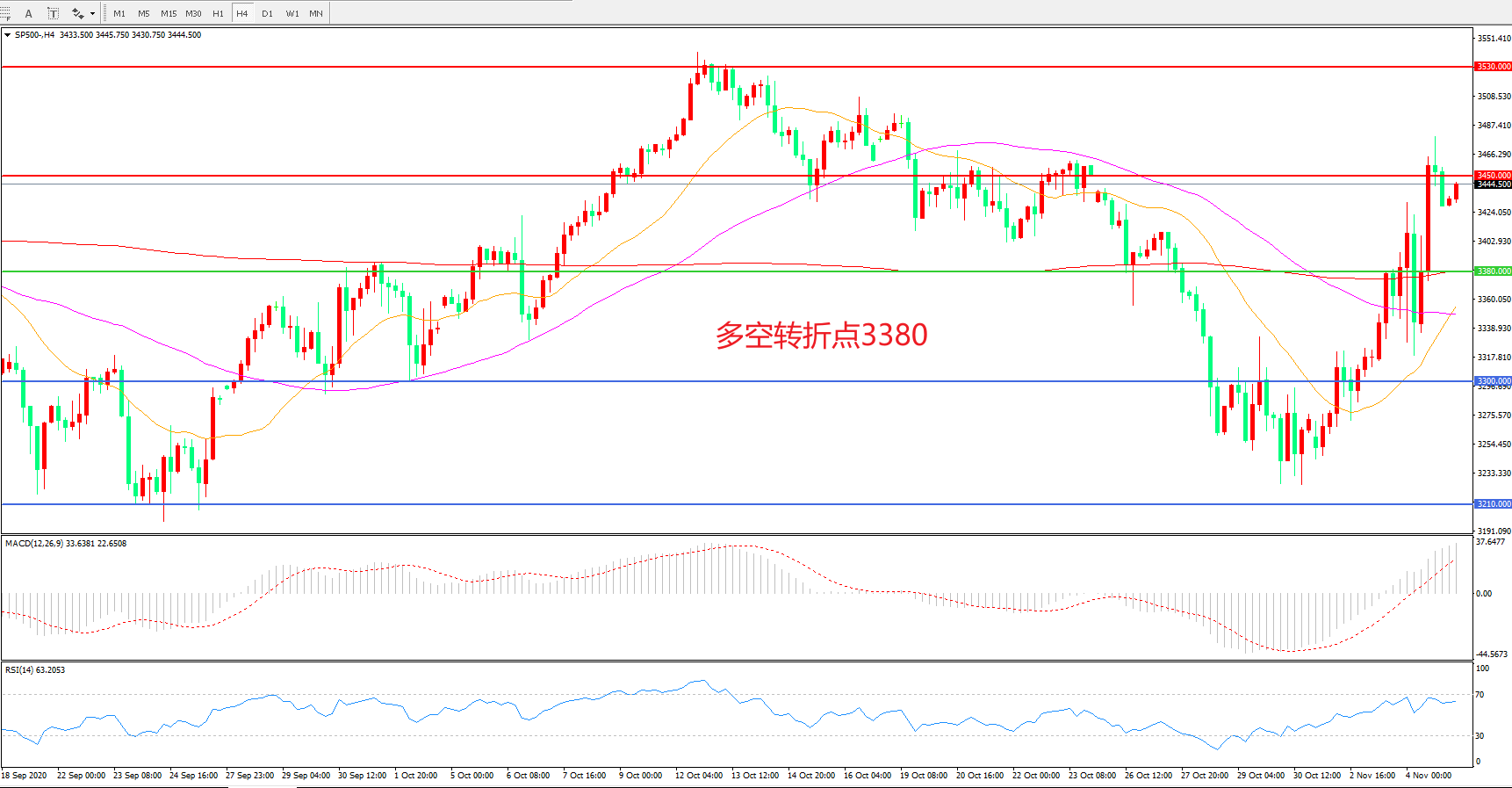 波澜诡橘的选情背后却是美股一片欢腾,标普500指数大涨2.2%,报3433.50点。由于国会选举结果可能是,两党各自把持参众两院,那将不会出现对企业加税和加强监管,对高成长型科技股有利,大型科技股市值一夜飙升逾3000亿美元。但市场未来几个交易日的波动可能还是难以避免。