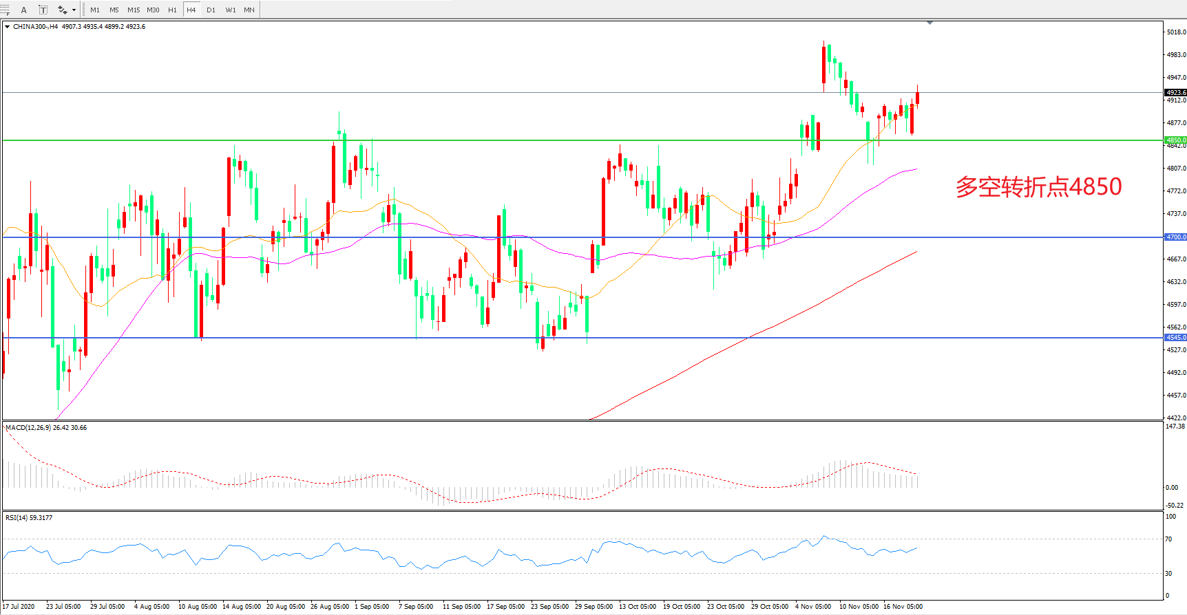 交易策略:在4850.00之上看涨,目标5000.00 5150.00