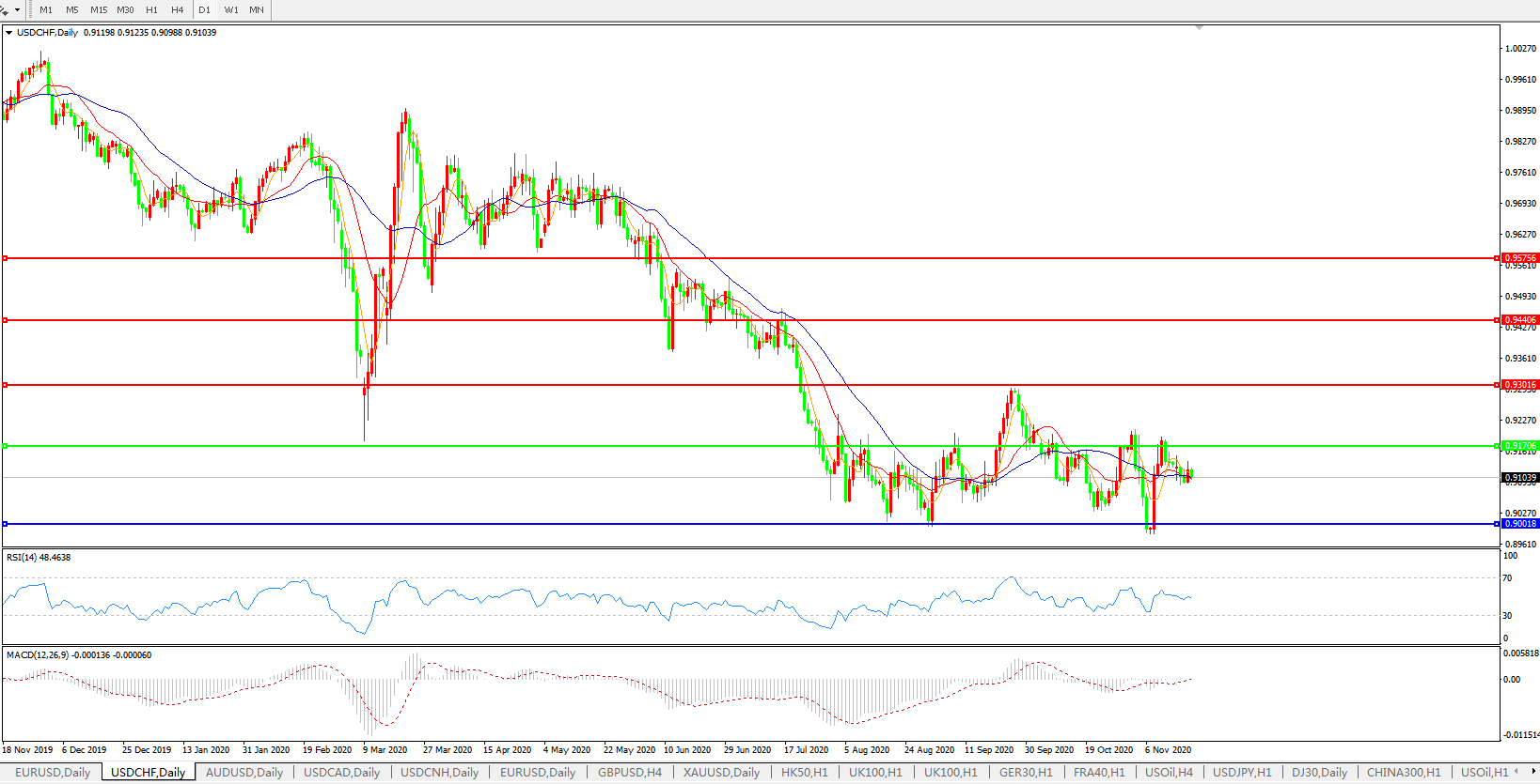 刺激计划磋商恢复,美元兑瑞郎延续整理