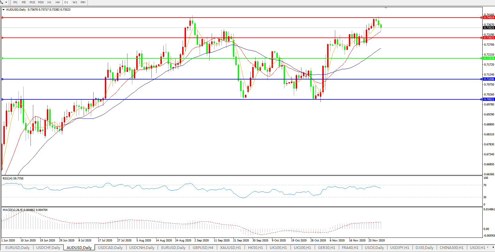 交易策略:0.7200上方看涨,目标0.7300、0.7400
