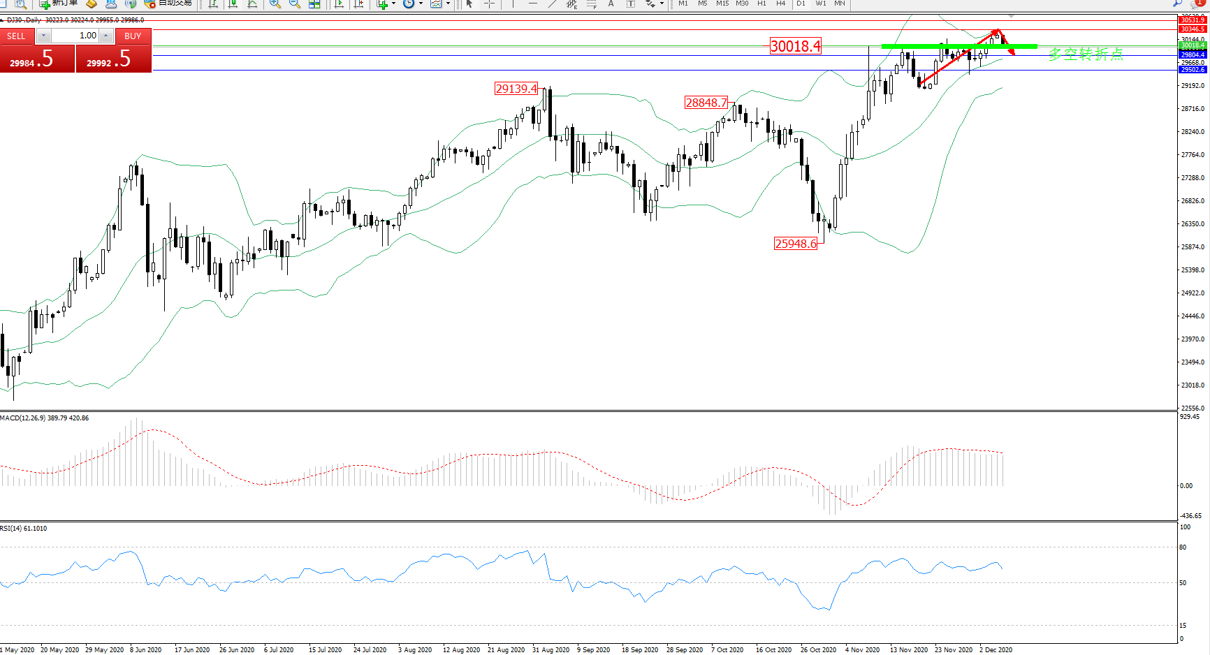 道琼斯指数12月7日(周一)收盘下跌148.50点,跌幅0.49%,报30069.79点。美股三大指数涨跌互现,围绕9080亿美元纾困方案的磋商已经慢了下来,在对州和地方政府的援助以及企业免责保护这些问题的关键细节上,双方僵持不下。同时,议员们也在争论1.4万亿美元综合支出法案。纾困法案可能会绑定到这项用于为政府运作提供拨款的支出法案上;当前为政府运作提供资金的法案将于12月11日到期,一名民主党助手称,为此众议院计划周三投票表决期限为一周的持续决议案,以免政府停摆;参议院少数党领袖舒默和许多共和党参议员支持,愿意在此基础上展开纾困方案谈判,这在上周掀起了一波乐观情绪;但是几位国会助手称,从周末到周一的磋商并没有取得足够多进展。