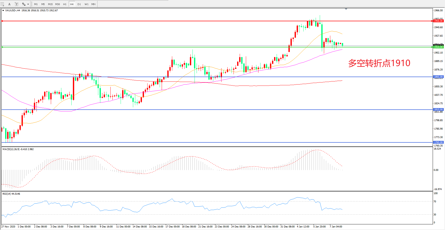 备选策略:在1910.00之下看跌,目标1865.00 1815.00