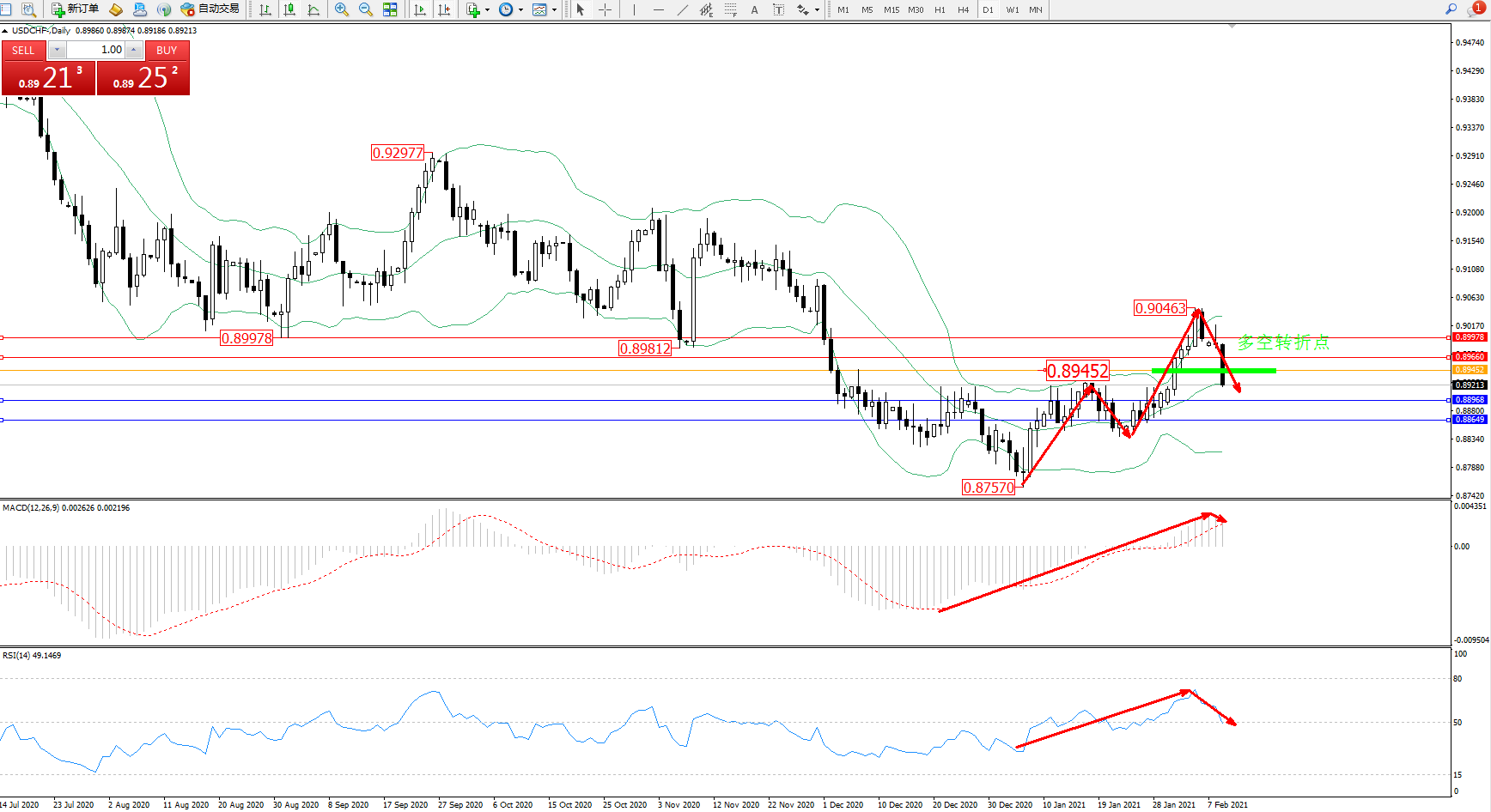 备选策略:0.89452上方看涨,目标0.89660、0.89978