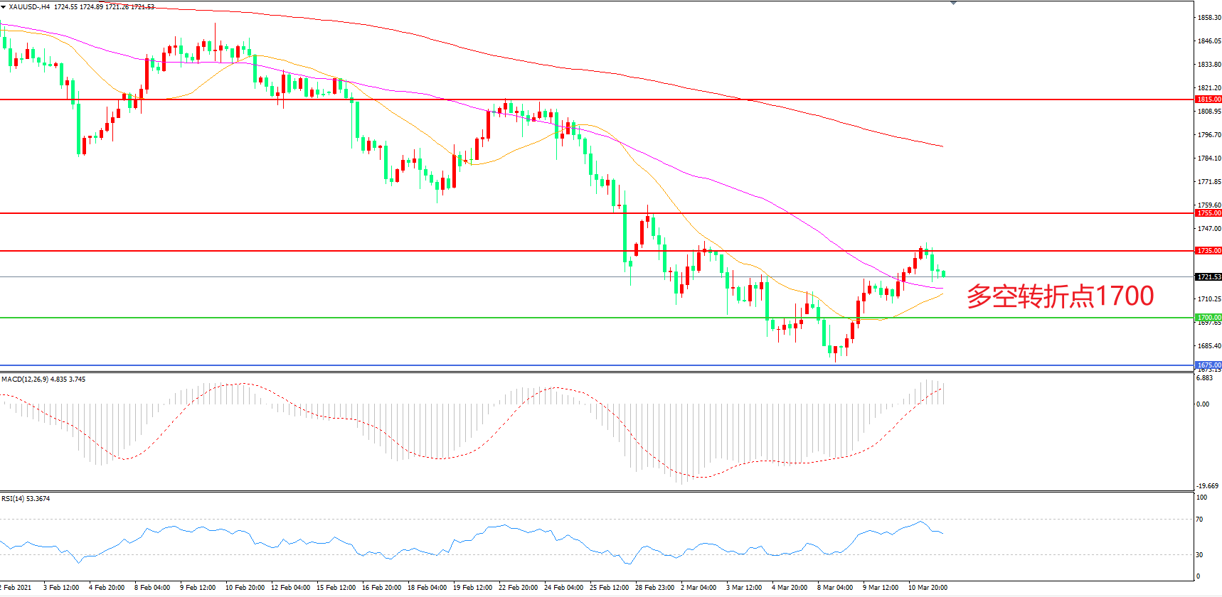 多空转折点:1700.00