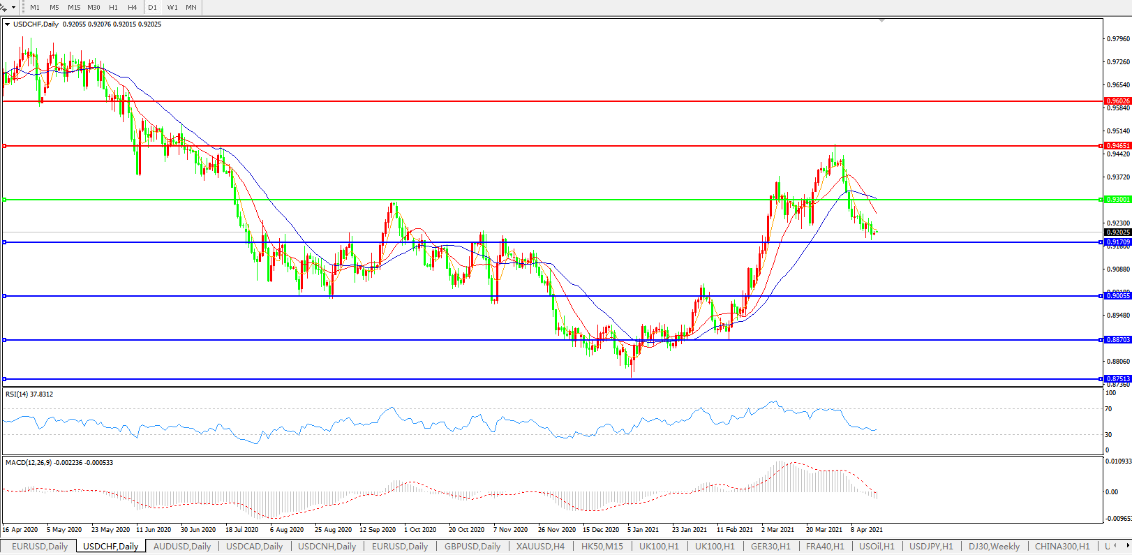 交易策略:0.9300下方看跌,目标0.9170、0.9000