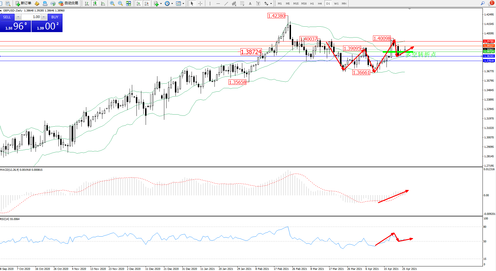 交易策略:1.38724上方看涨,目标1.39327、1.39780