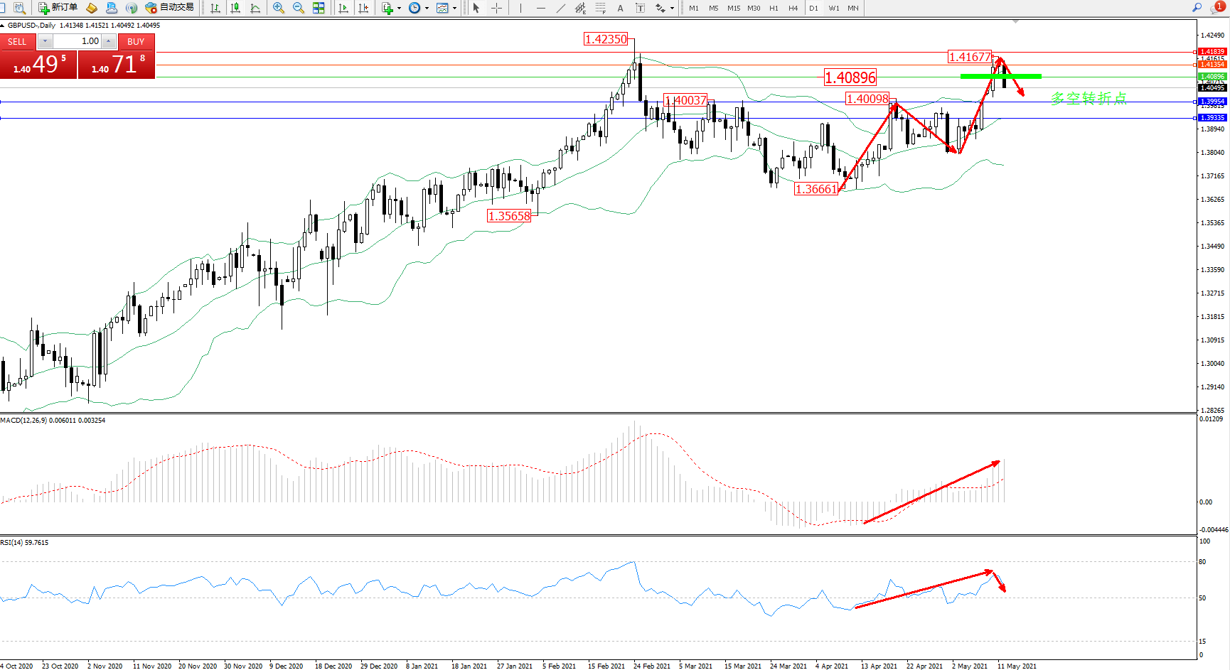 备选策略:1.40896上方看涨,目标1.41354、1.41839