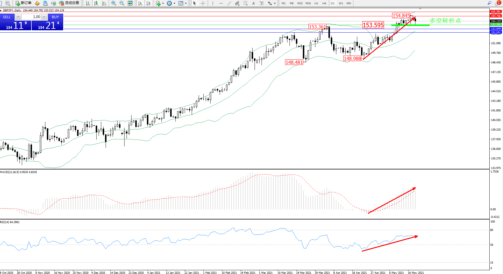 英镑兑日圆高位154.119附近震荡,强劲的英国就业数据以及零售销售表现良好,助长了对英国经济反弹的乐观看法,而英国央行未发现消费物价有上涨的压力。市场仍对全球复苏有信心。随着发达国家新冠疫苗接种展开,美元仍有进一步下跌的空间,除非再次出现美国通胀忧虑加剧以及美债收益率随之急升。随着英国经济从第三次抗疫封锁措施中复苏,招聘速度加快;为此,市场上目前普遍预料英央行将先于欧洲央行收紧货币政策。