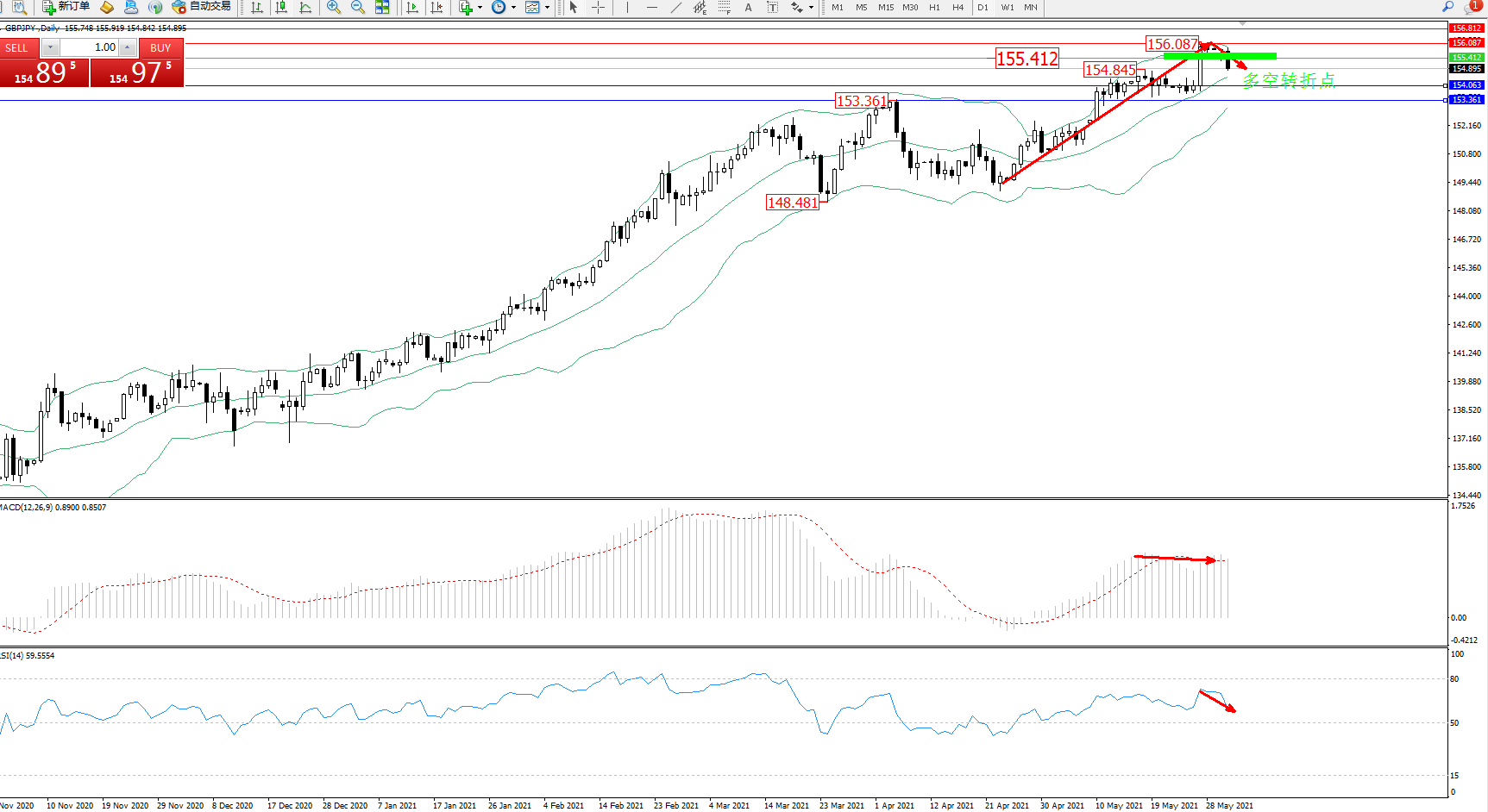 英镑兑日圆维持高位154.895附近震荡,英国5月份采购经理人指数飙升至前所未有的高位,新订单和就业的创纪录增长支持了近30年调查历史上最急剧的产量增长之一。工业活动强劲增长的必然结果是,供应链的压力增加,价格压力累积。原材料短缺、港口问题、新冠肺炎疫情限制、英国脱欧后的困难和市场力量都严重扰乱了制造商的投入和向客户提供的制成品。由于几乎没有迹象表明供应压力减弱,消费者将更加明显地看到这些价格上涨。市场对英国6月全面解除封锁恢复正常社会活动的前景充满期待,同时也憧憬英国央行进一步收紧政策的动向。