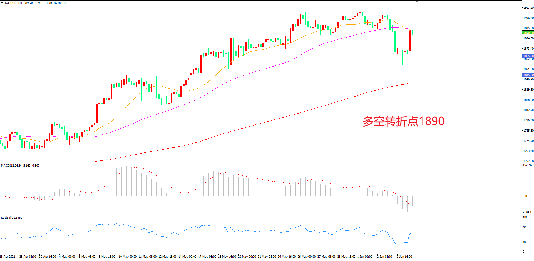 交易策略:在1890.00之上看涨,目标1910.00    1935.00