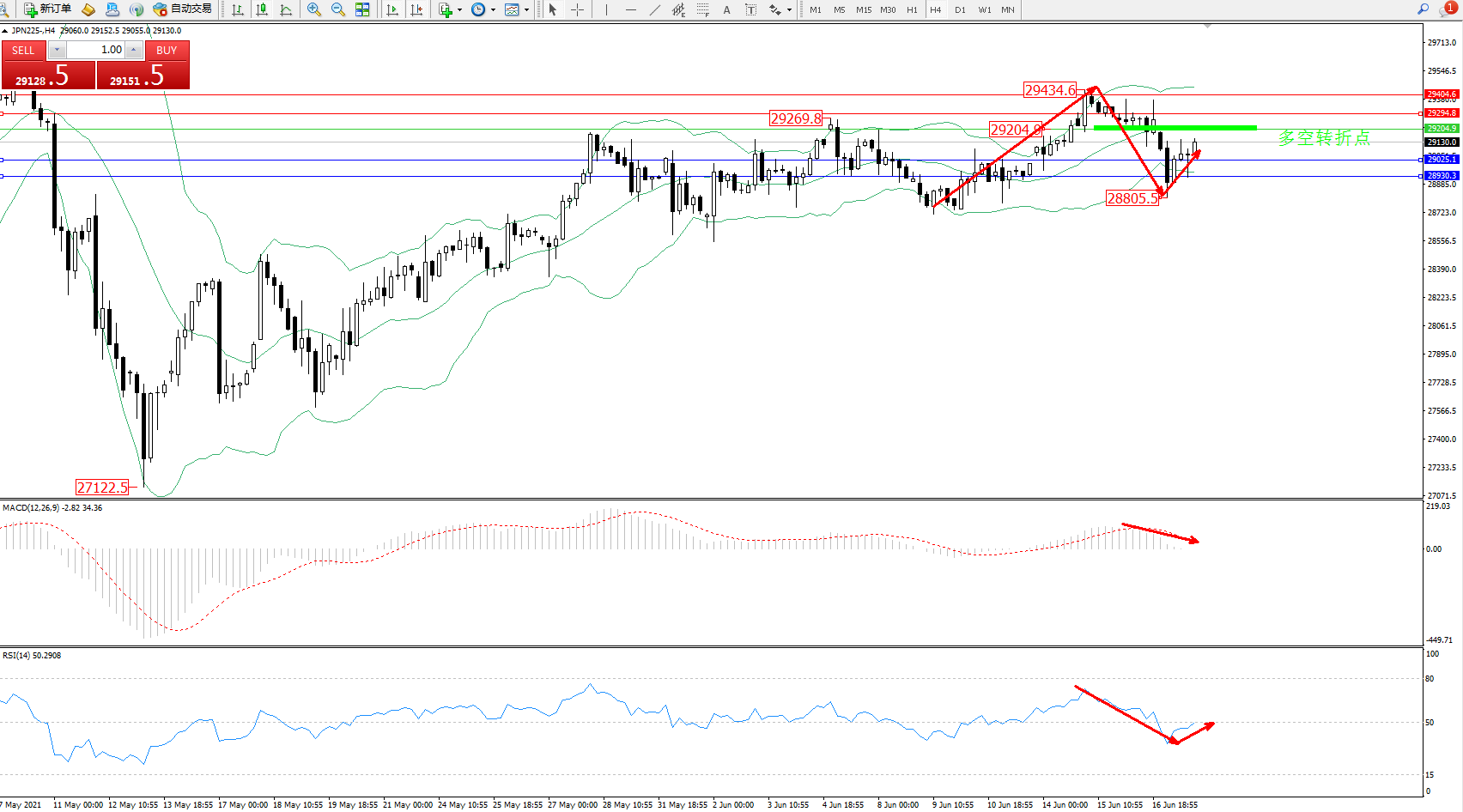 日经225指数6月17日(周四)收盘下跌265.51点,跌幅0.91%,报29025.50点。日本政府首席医疗顾问OMI:现在放松对新冠病毒的警惕还为时过早。日本首相菅义伟宣布东京都疫情紧急状态将于6月20日结束。地区政府准备在7月底前为老年人接种疫苗。最重要的是避免感染反弹,医疗系统崩溃。如果疫情反弹。可能会重新引入限制措施。受感染人群中老年人的比例正在下降。想要向世界展示是如何用奥运会战胜危机。奥运观众的限制将基于赛事规则。将在秋季前的某个时点就大选做出决定。不会因为需要改善财政状况而改变政策。随着疫苗接种步伐加快,日本离群体免疫越来越近。夏季旅游指南将取决于感染情况。如有必要仍可能进入紧急状态。
