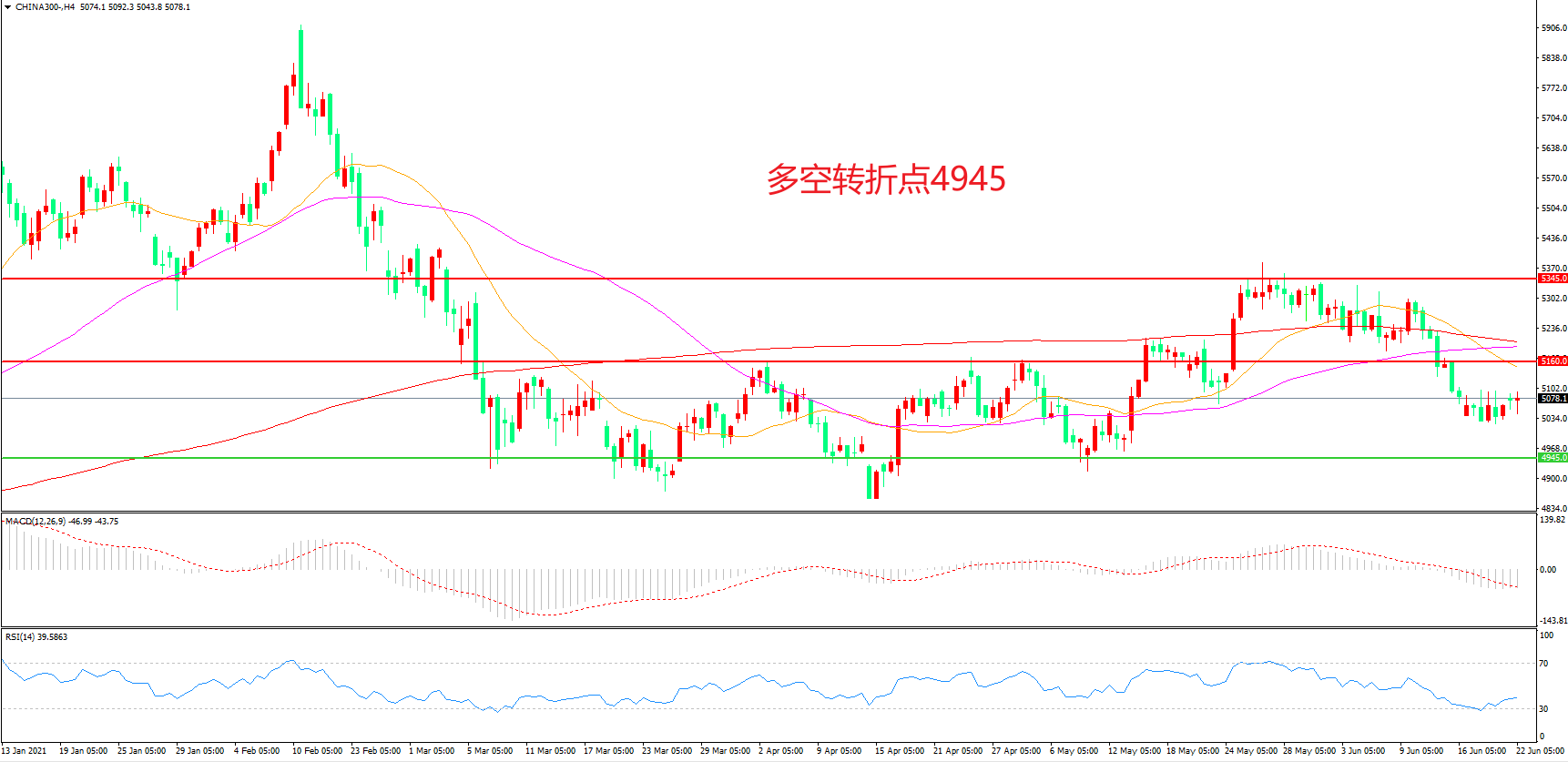 4小时图看,沪深300延续低位震荡,短线行情企稳,均线系统粘合成为上方阻力,4945成为下方支撑,MACD绿柱缩短,RSI指标走平,日内震荡上行概率较大。