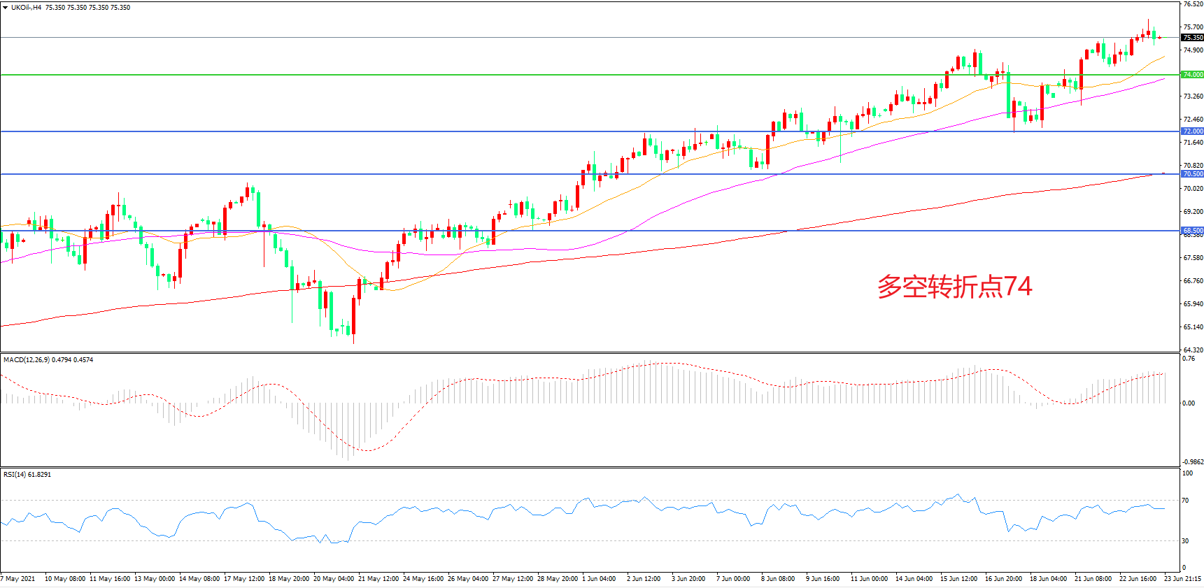 交易策略:在74.00之上看涨,目标77.00 80.00