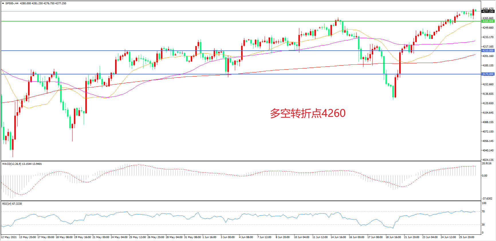 周一(6月28日),全球疫情和经济动荡难挡美股节节攀升,此前表现疲软的科技股重新扛起领涨大旗,以Facebook为首的多只龙头科技股至少涨超1%,标普500小幅上行后收报4277.50点。此前由于新冠疫苗接种和强劲的财政刺激措施,人们很容易看好股市,一旦本周五的非农报告符合预期,可能导致美联储鹰派基调再起,务必重点关注。