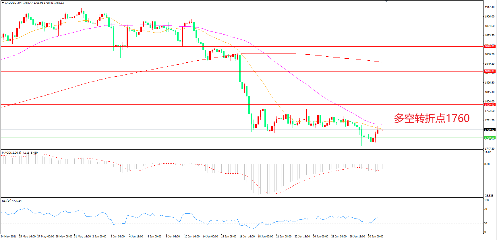 交易策略:在1760.00之下看跌,目标1730.00 1700.00