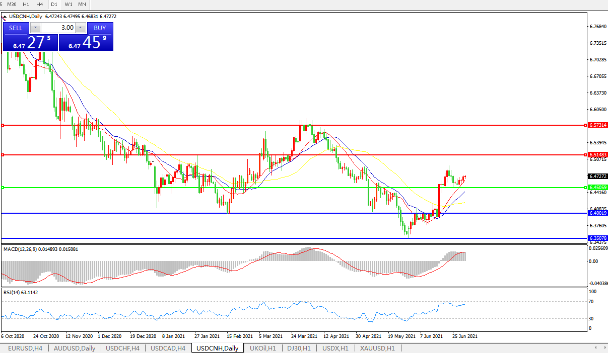 交易策略: 在6.4505之上,看涨,目标价位为6.5150,然后为6.5730。
