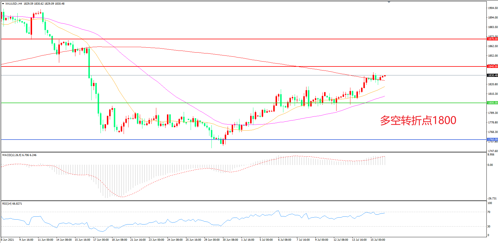 交易策略: 在1800.00之上看涨,目标1840.00 1870.00
