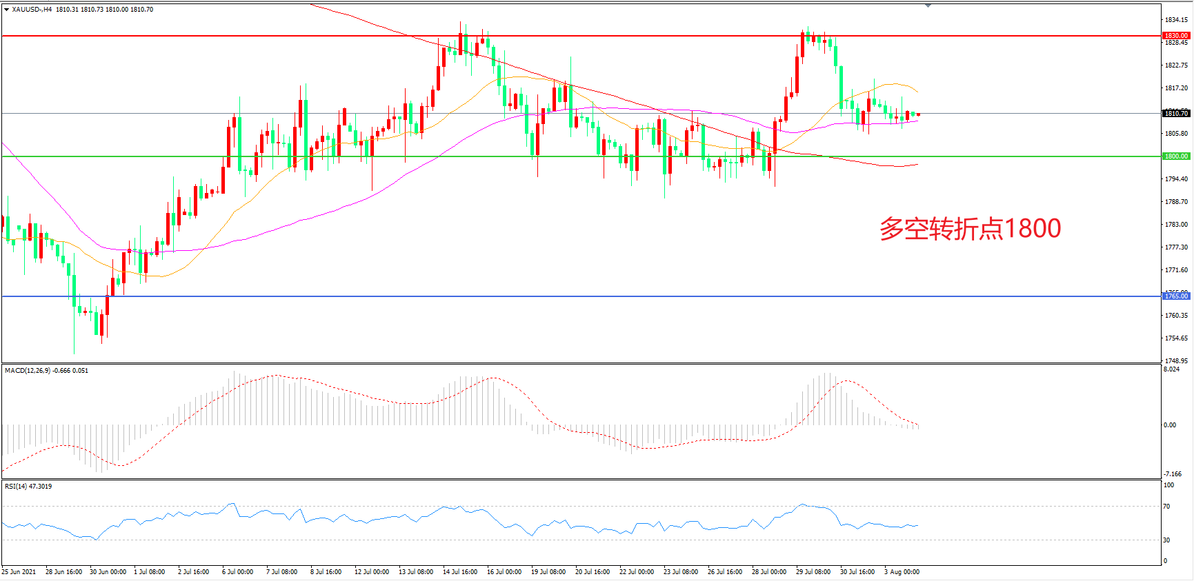 备选策略:在1800.00之下看跌,目标1765.00 1730.00