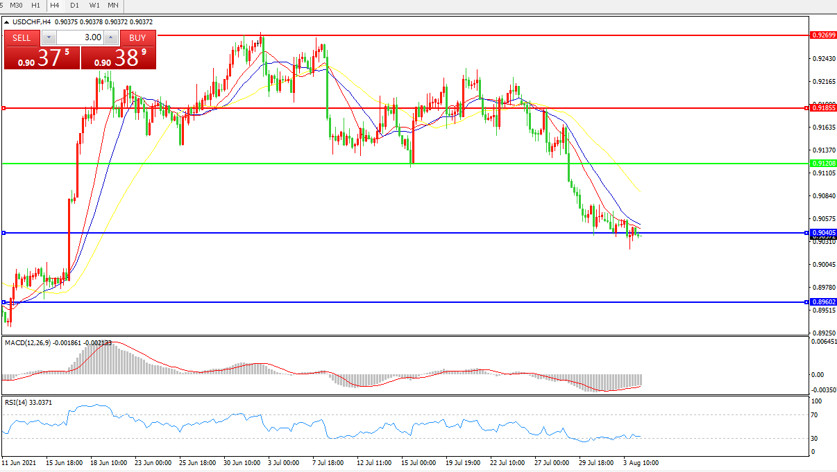 技术面简析:4小时图均线开始逐步走低,汇价弱势整理,MACD运行于0轴下且量能小幅缩量,RSI低位徘徊,预计短期汇价大概率将在反弹后进一步下行。