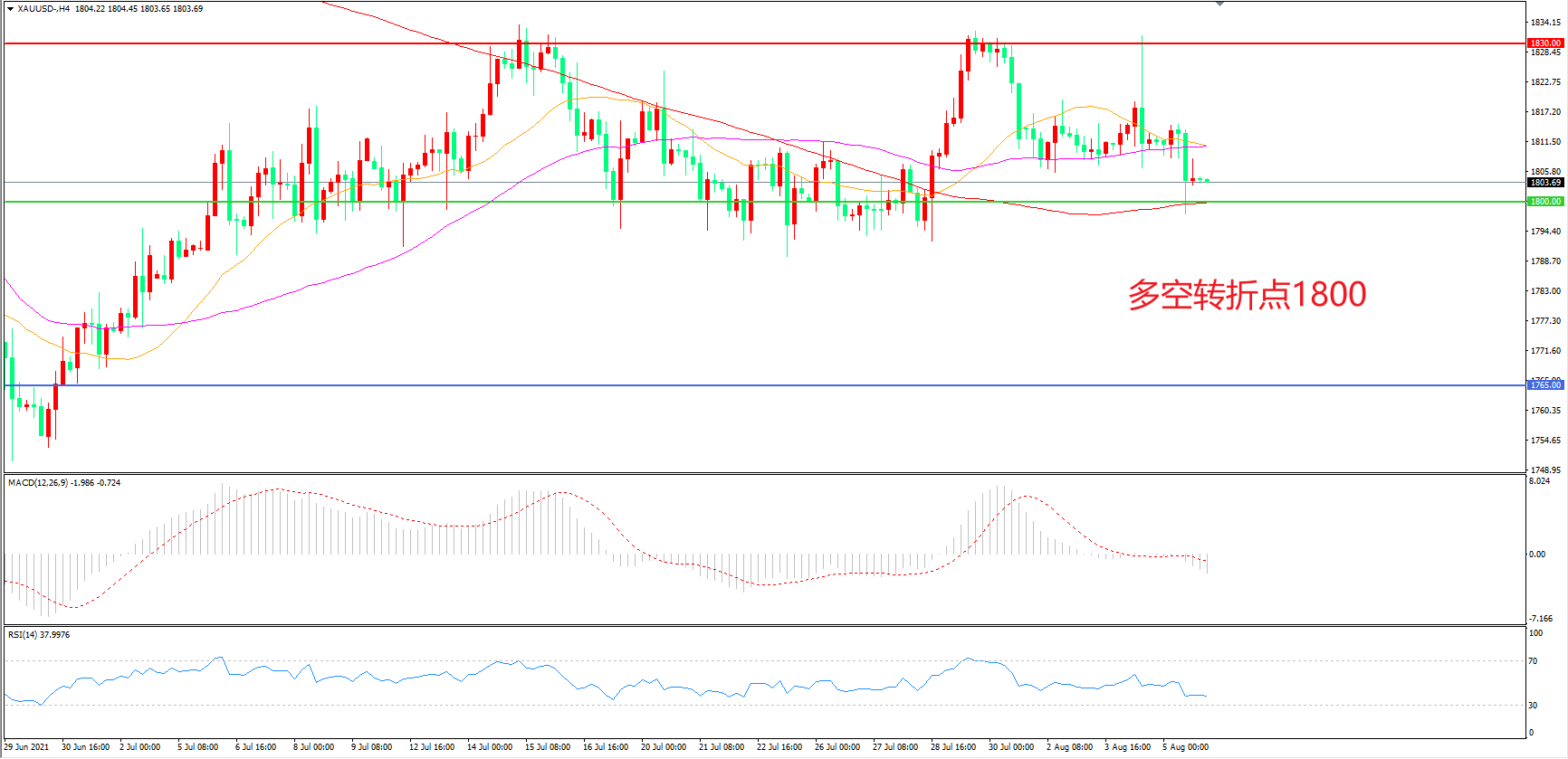 备选策略:在1800.00之下看跌,目标1765.00 1730.00