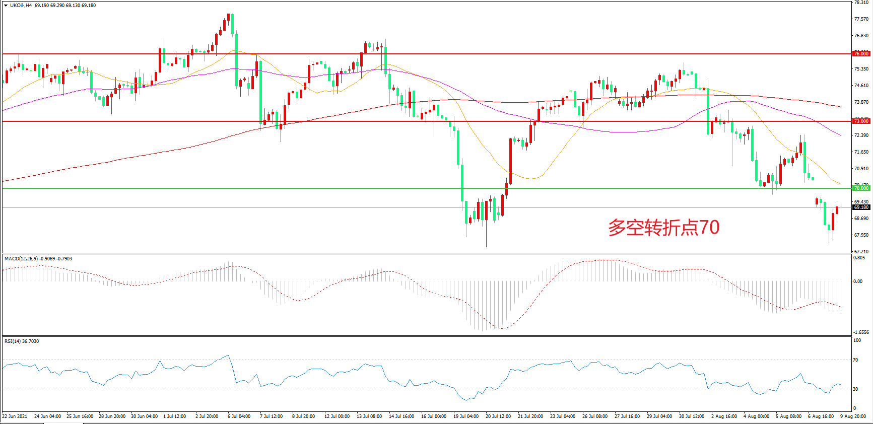 交易策略: 在70.00之下看跌,目标66.50 62.00