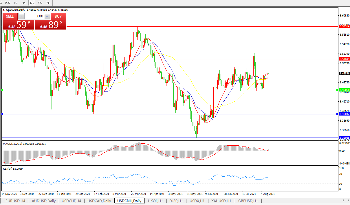 备选策略:在6.4505之下,看跌,目标价位为6.4000,然后为6.3500。