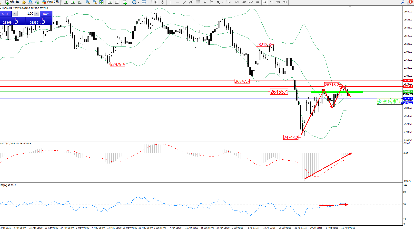 技术点评:低位多头动力持续震荡上扬,纠结于布林带指标通道中上轨区间窄幅整理平移,短期触及上轨附近节点后得到短暂压制遇阻回撤,布林带指标呈收口走势持续中,MACD指标低位多头动力持续震荡上移,即将触及0轴线附近节点,RSI指标纠结于50均衡线附近弱势徘徊中;