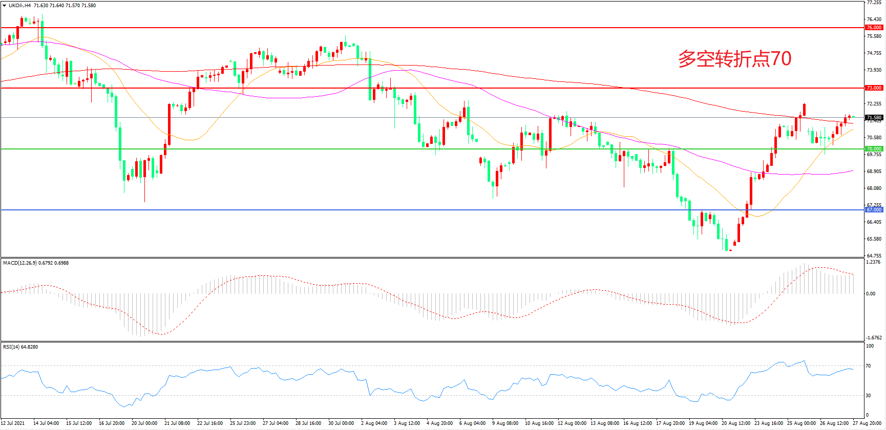 交易策略:在70.00之上看涨,目标73.00 76.00