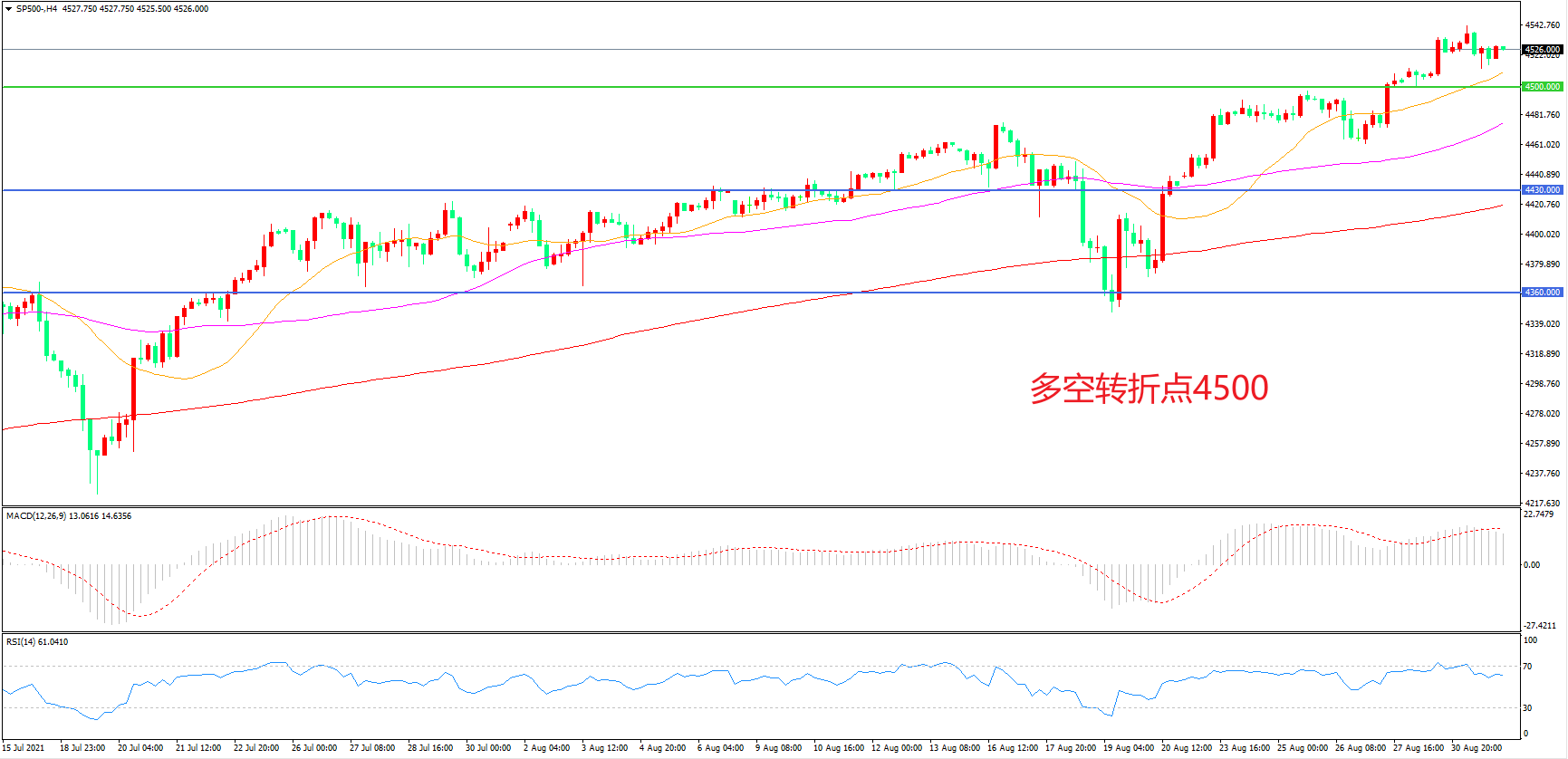 周二(8月31日),市场因素多空交织,继美联储之后,欧洲央行官员也开始发出Taper的呼声,令市场担心各大央行提前撤除宽松的前景,与此同时美国8月谘商会消费者信心超预期下降,标普500延续高位震荡,收报4525.75点。从历史表现来看,9月往往是美股全年表现最疲软的月份,投资者需要警惕美股出现回调。本周五,美国将公布8月非农就业数据,市场投资者表现将会相对谨慎。