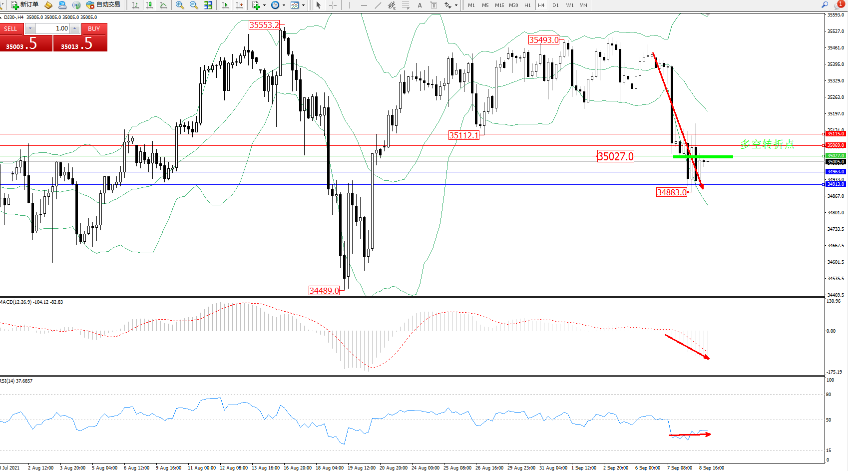 道琼斯指数9月8日(周三)收盘下跌69.26点,跌幅0.20%,报35030.74点;美股收盘,三大股指集体下跌,美联储在周三发布的褐皮书中表示,经济活动减速主要是因为多数地区的外出就餐、出行和旅游休闲活动减少,展望未来,大多数地区的企业仍对近期前景感到乐观,不过对供应中断和资源短缺的广泛担忧仍持续存在;美联储官员正密切关注经济复苏情况,以决定何时开始缩减每月1,200亿美元的资产购买规模。主席鲍威尔曾在8月27日杰克逊霍尔年会上表示,如果经济保持在增长轨道上,就可能今年晚些时候启动减码。美联储下次政策会议将于9月21-22日举行。