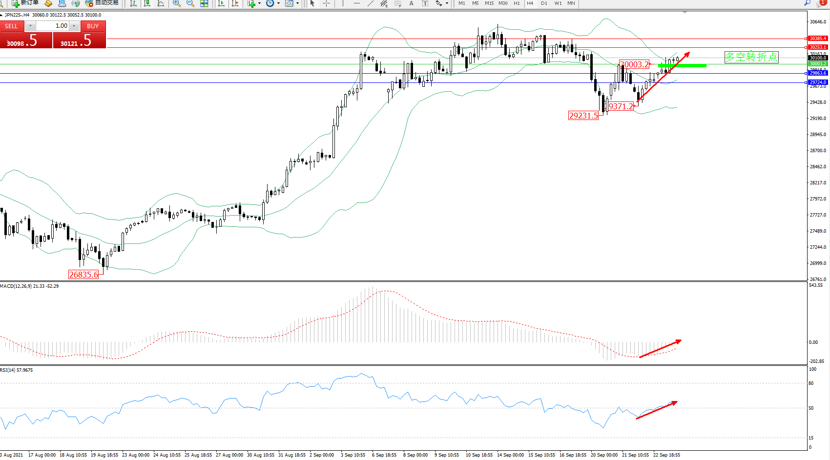 日经225指数9月22日(周三)收盘下跌180.71点,跌幅0.61%,报29659.00点。日本央行维持利率不变。日本央行行长黑田东彦:日本经济依然处于严峻状态。日本经济正在回暖。日本投资正在恢复。疫情对经济造成的不确定性依然很高。如果需要,日本央行将加大宽松政策力度,关注疫情的影响。变种新冠病毒扩散冲击消费。经济周期仍保持良好。在出口、工厂产出的支持下,良性增长循环正在形成。物价走势依然坚挺。将密切关注日本国内外的经济形势,包括短观和各分行经理报告。
