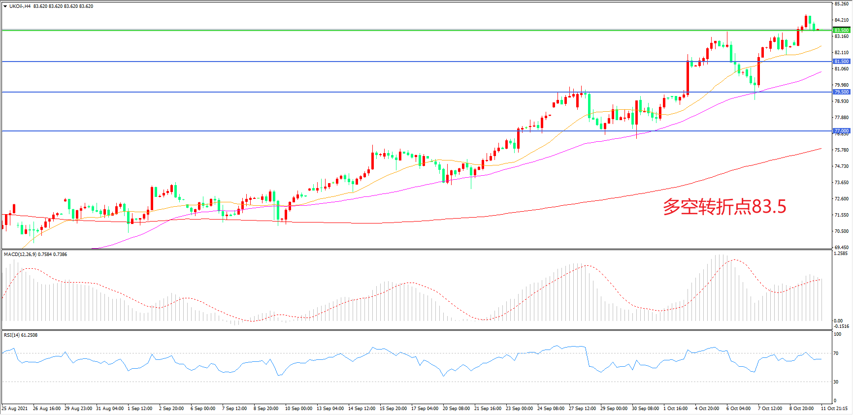 周一(10月11日),席卷全球的能源危机正在加大北半球越冬困境,,“商品之王”原油也在供应紧张和经济回暖的预期下大涨,布伦特原油大幅飙升,最终收报83.62美元/桶。随着全球交通限制的缓解,运输燃料需求将进一步复苏,加上OPEC+限制生产政策,在市场明显转向之前,原油市场仍会保持强势状态。