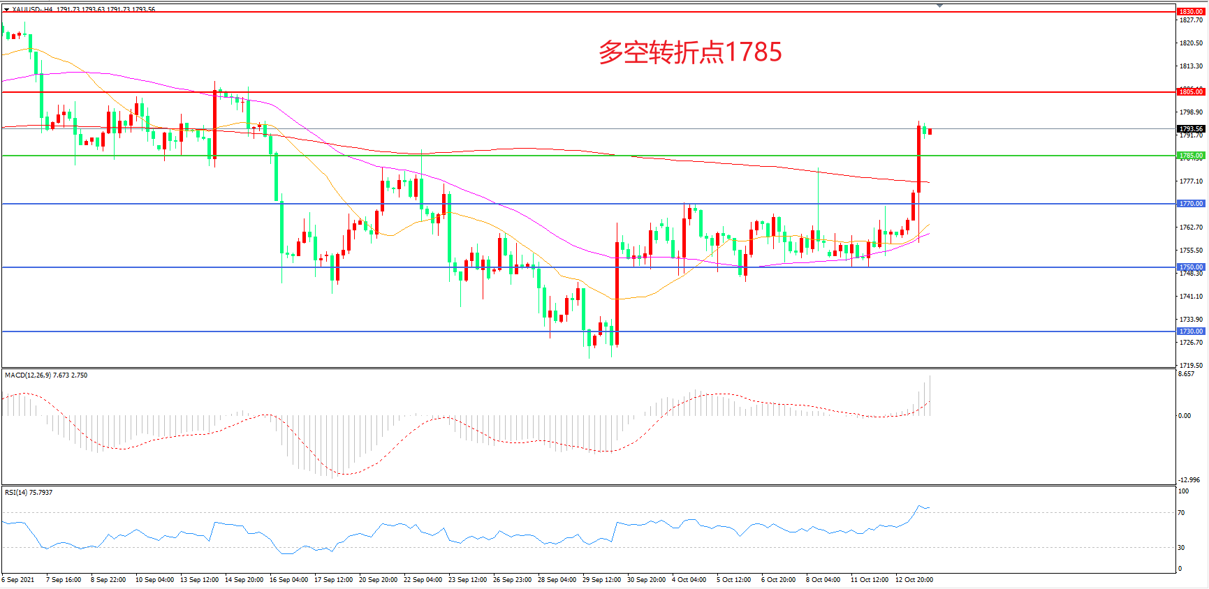 交易策略:在1785.00之上看涨,目标1805.00 1830.00